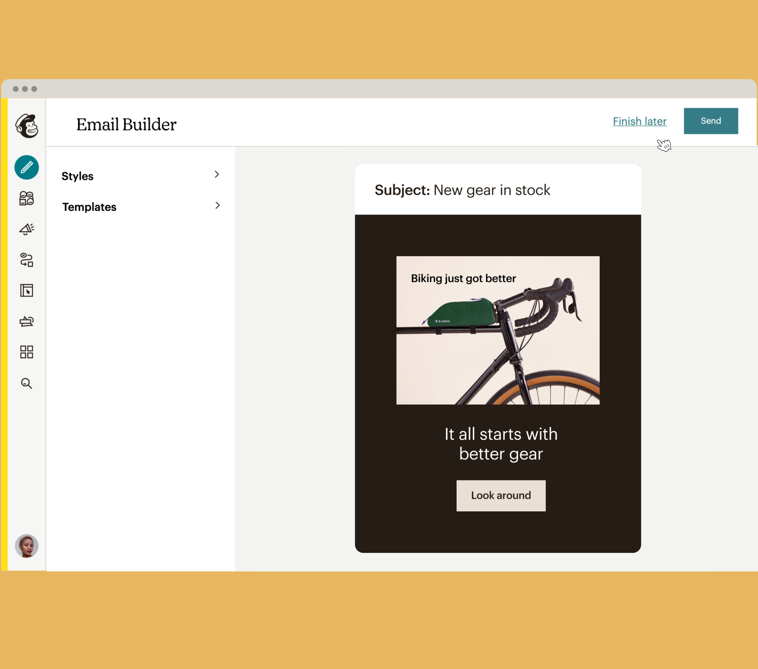 Sin embargo, para que la gente lea el boletín de tu empresa, este debe tener un buen aspecto. Aquí es donde entra en juego un software de diseño de correo electrónico como Mailchimp. Utilizando las herramientas de diseño de correo electrónico de Mailchimp, puedes crear fácilmente boletines y otros materiales creativos que se alineen con el estilo de tu marca.
