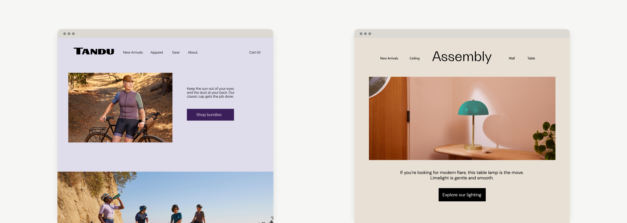 Ejemplo de dos sitios web diseñados a medida con el Asistente creativo
